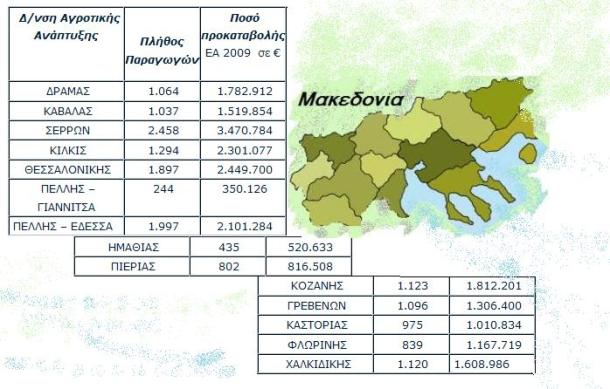 Δ/νση Αγροτικής Ανάπτυξης | Πλήθος Παραγωγών | Ποσό προκαταβολής ΕΑ 2009 σε € |