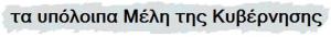 Υπουργείο Εξωτερικών Υπουργός: Δρούτσας Δημήτρης Αναπληρωτής υπουργός: Ξενογιαννακοπούλου Μαριλίζα Υφυπουργός: Κουβέλης Σπύρος Υφυπουργός: Δόλλης Δημήτρης
