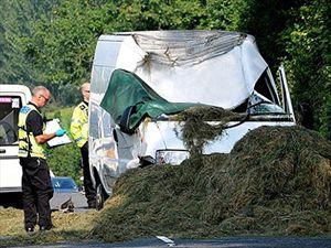 Το βαρύ κυκλικό δεμάτι, αφού κατρακύλησε το λόφο αναπτύσσοντας μεγάλη ταχύτητα, προσέκρουσε σε έναν φράχτη όπου πήρε αρκετό ύψος και προσγειώθηκε πάνω στο βαν του άτυχου Edwards, διαλύοντας ολοσχερώς την καμπίνα επιβατών . Αμέσως μετά το όχημά του βγήκε από την πορεία του και συγκρούστηκε με διερχόμενο αυτοκίνητο