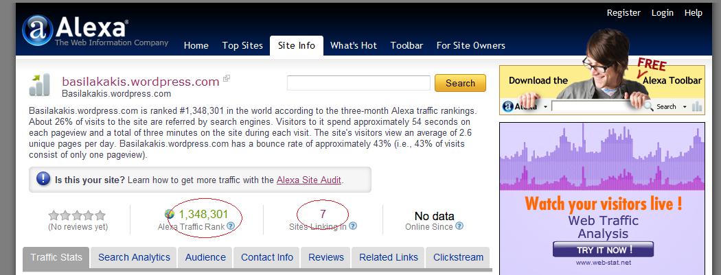 για να δούμε τι λέει για μας . . . η Alexa.com ( Νο1 εταιρεία μέτρησης επισκεψιμότητας στο Internet)