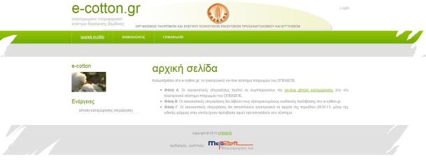 Στο αμέσως χρονικό διάστημα θα αρχίσει να λειτουργεί η σελίδα e-cotton.gr του ΟΠΕΚΕΠΕ στην οποία θα αναρτωνται και θα γνωστοποιούνται οι τιμές παραλαβής στο βαμβάκι απο τα εκκοκιστήρια καθώς και οι διεθνής χρηματιστηριακές τιμές που θα επικρατούν στο βαμβάκι.