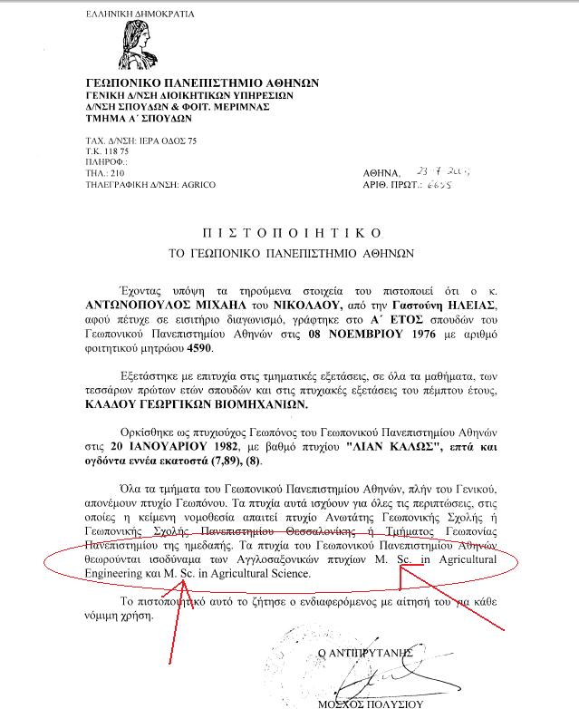 λεπτομέρεια : η αναγνώριση των πτυχίων γεωπονίας ώς αντίστοιχου επιπέδου Master έχει ξεκινήσει στην Γεωπονική Αθηνών