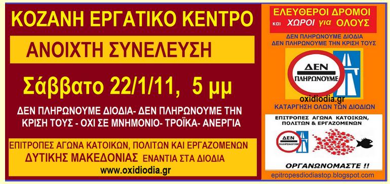 επιτροπή ΔΙΟΔΙΑ ΣΤΟΠ : 2 γενικές συνελέυσεις σε ΑΘήνα & Κοζάνη