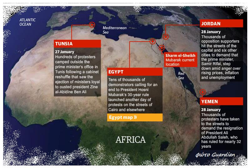 Οι εξεγέρσεις στην Τυνησία και την Αλγερία, και τώρα στην Αίγυπτο αν και διαφορετικές στα αίτια αλλά και τις αφορμές που τις προκάλεσαν, αποτελούν προάγγελους κοινωνικών εκρήξεων που αναμένονται σε διάφορα σημεία του πλανήτη.
