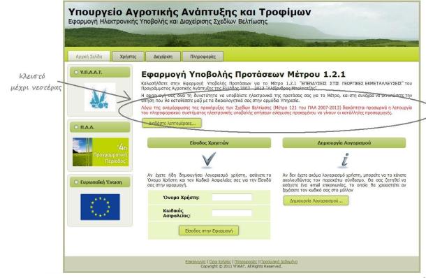 Λόγω των δρομολογουμένων αλλαγών στα σχέδια βελτίωσης προς το παρόν έχουν σταματήσει να δέχοται αιτήσεις στο Υπουργείο Αγροτικής Ανάπτυξης κλίκ εδώ