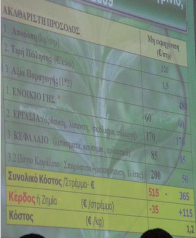σημείο ισορροπίας :   195 – 250 kg / στρ ,  λιγότερη απόδοση είναι ασύμφορη η καλλιέργεια