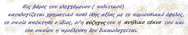 - Ατιμωρησία βουλευτών : πως οι εθνοπατέρες φήφισαν Νομοσχέδιο όπου θα μπορούν να την σκαπουλάρουν , όταν έχουν αποκτήσει «μαύρα χρήματα» απο «παράξενες συναλλαγές» και μάλιστα να μεταβιβάσουν τα » μαύρα» χρήματα σε συζήγους , γιούς , κόρες κτλ