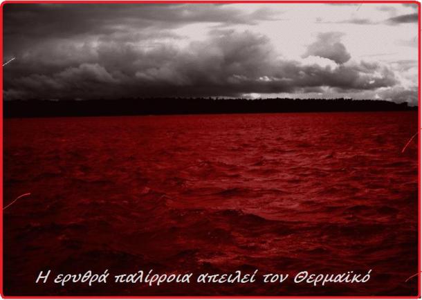 Η «ερυθρά παλίρροια» εμφανίζεται όλο και συχνότερα τα τελευταία χρόνια στον Θερμαϊκό κόλπο, με ανθρωπογενή αίτια, κυρίως δηλαδή τα αστικά λύματα και τα λιπάσματα που καταλήγουν ακόμη και επεξεργασμένα στη θάλασσα. Ευνοείται από τις μετεωρολογικές συνθήκες, όπως ζέστη και ηλιοφάνεια. Οταν αποσυντίθεται το πλαγκτόν καταναλώνει οξυγόνο και δημιουργεί ασφυκτικά φαινόμενα στον κόλπο. Δυστυχώς, δεν μπορεί να εξαφανιστεί με τα καραβάκια της καθαριότητας. Πρέπει να κάνει τον «κύκλο» του για περίπου δύο με τρεις εβδομάδες. Στο μεταξύ, απειλεί μυδοκαλλιέργειες και ψάρια.