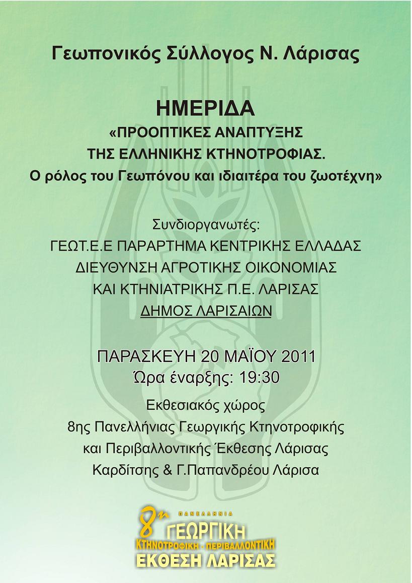 στα πλαίσια της 8ης Πανελλήνιας Γεωργικής Κτηνοτροφικής και Περιβαλλοντικής Έκθεσης Λάρισας