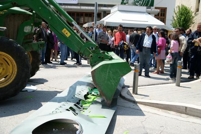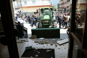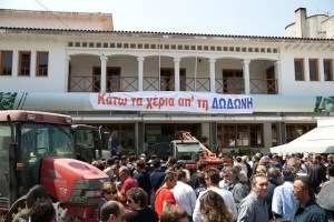 Το συλλαλητηρίο των κτηνοτρόφων άρχισε με πορεία των τρακτέρ από την βιομηχανία “ΔΩΔΩΝΗ” και μέσα από την πόλη σταμάτησε στην Αγροτική Τράπεζα Ιωαννίνων. Ύψωσαν πανώ, ξήλωσαν με τα τρακτέρ την είσοδο της τράπεζας, έσπασαν τις ταμπέλες, πέταξαν αυγά και έχυσαν γάλα στο εσωτερικό της. Κύρια τους αιτήματα είναι να μην πουληθεί η γαλακτοβιομηχανία αλλά και να αλλάξει η Διοίκηση της.