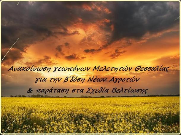 Ανακοίνωση εξέδωσαν οι Γεωπόνοι μελετητές Θεσσαλίας με την οποία ζητούν :