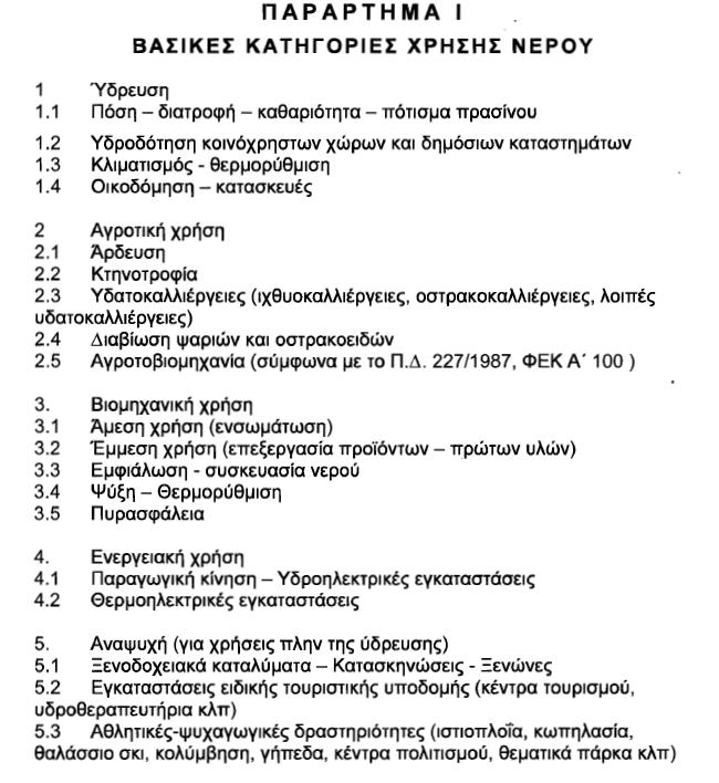 Υφιστάμενα δικαιώματα χρήσης νερού