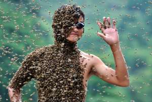 Nικητής του διαγωνισμού είναι να αντέξει κάποιος όσες περισσότερες μέλισσες γίνεται , πάνω στο σώμα του .