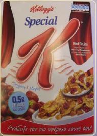 Special Κ – Τραγανές Νιφάδες απο Ρύζι και Σιτάρι ολικής άλεσης με αποξηραμένα καταψυγμένα φρούτα Εταιρία : Kelogg’s συσκευασία : 300 g ημερ/νία ελάχ. διατηρησιμότητας: 3/4/2012 barcode : 5050083262548 αρ. παρτίδας : L10