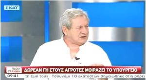 | Συνέντευξη επίσης σε πρωϊνή εκμπομπή του ΣΚΑΙ έδωσε ο υφυπουργός , όπου μίλησε για την δωρεάν διανομή δημόδιας γής σε αγρότες καθώς και για τις συνχωνεύσεις Οργανισμών | ![]() |