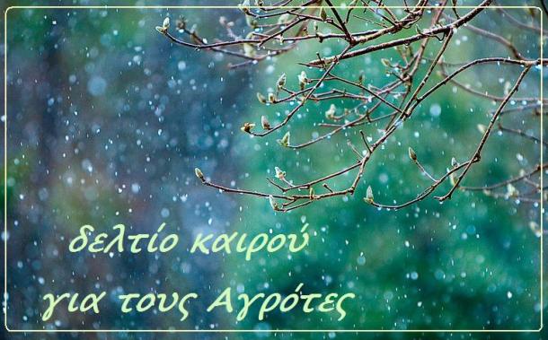 Δελτίο Καιρού εξέδωσε χθές το υπουργείο Αγροτικής Ανάπτυξης σύμφωνα με το οποίο , εκτός κάποιων δυσκολιών στην Βόρεια Ελλάδα λόγω βροχών, θα μπορούν οι καλλιεργητικές εργασίες να πραγματοποιηθούν κανονικά.