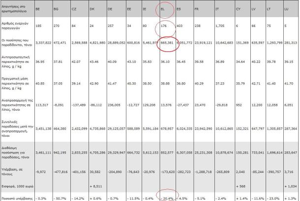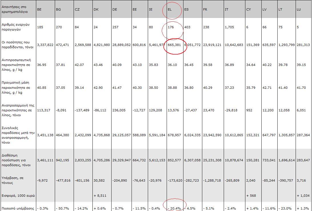 Σε πολλά από τα άλλα κράτη μέλη όχι μόνο τηρήθηκαν οι εθνικές ποσοστώσεις αλλά και η αντίστοιχη παραγωγή ήταν πολύ χαμηλότερη αυτών. Σε 14 κράτη μέλη οι καταγραφείσες παραδόσεις ήταν τουλάχιστον 10% χαμηλότερες από την ποσόστωσή τους.