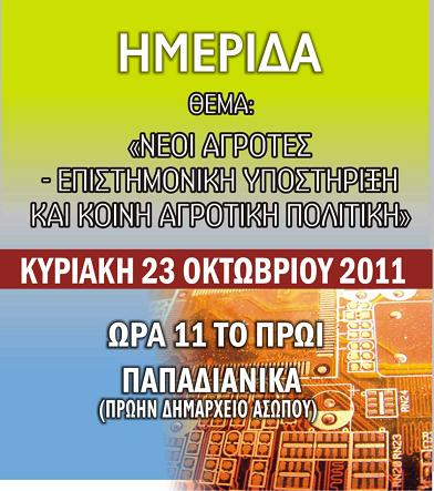Ημερίδα Νέων αγροτών Λακωνίας Posted on 20/10/2011 by ΒΑΣΙΛΑΚΑΚΗΣ Σχολιάστε Ημερίδα θα πραγματοποιηθεί με θέμα : Νέοι Αγρότες, Επιστημονική Υποστήριξη & Κοινή Γεωργική Πολιτική Παπαδιάνικα Λακωνίας Δημαρχείο … & 23 Οκτωβρίου ώρα 11 πμ .. διοργανωτές : Ένωση Νέων Αγροτών Λακωνίας, Δήμος Μονεμβάσιας, Γενική Γραμματεία Νέας Γενιάς ΤΕΙ Πειραιά Προώθηση Στείλε ένα σύνδεσμο σε έναν φίλο(Ανοίγει σε νέο παράθυρο) Email Εκτύπωση(Ανοίγει σε νέο παράθυρο) Εκτύπωση Mοιραστείτε στο Facebook(Ανοίγει σε νέο παράθυρο) Facebook Μοιραστείτε στο X(Ανοίγει σε νέο παράθυρο) Χ Μου αρέσει! Φόρτωση... Σχετικά