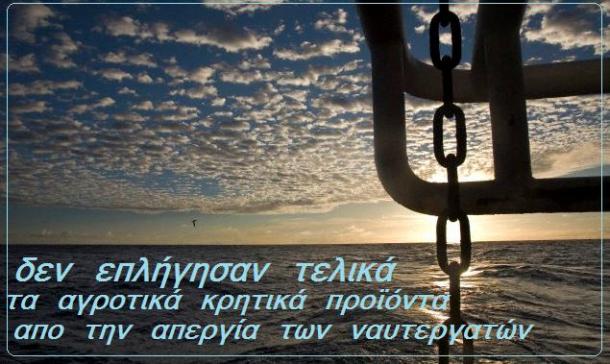 Οι αγρότες φόρτωσαν τα προϊόντα τους στο πλοίο των Μινωικών Γραμμών «Knossos Palace», το οποίο αναχώρησε χθές λίγο μετά το μεσημέρι , εκτάκτως, όπως ενημέρωσε η πλοιοκτήτρια εταιρεία.