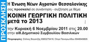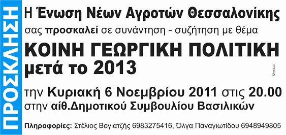 Συνάντηση Νέων Αγροτών Θεσ/νίκης Posted on 30/10/2011 by ΒΑΣΙΛΑΚΑΚΗΣ Σχολιάστε Ημερίδα θα πραγματοποιηθεί απο τους Νέους Αγρότες Θεσ/νίκης με θέμα: Κοινή Γεωργική Πολιτική με χρονικό ορίζοντα το 2020. Βασιλικά Θεσ/νίκης αίθουσα παλιού δημαρχείου … & Κυριακή, ώρα 8 μμ 6 Noεμβρίου Προώθηση Στείλε ένα σύνδεσμο σε έναν φίλο(Ανοίγει σε νέο παράθυρο) Email Εκτύπωση(Ανοίγει σε νέο παράθυρο) Εκτύπωση Mοιραστείτε στο Facebook(Ανοίγει σε νέο παράθυρο) Facebook Μοιραστείτε στο X(Ανοίγει σε νέο παράθυρο) Χ Μου αρέσει! Φόρτωση... Σχετικά