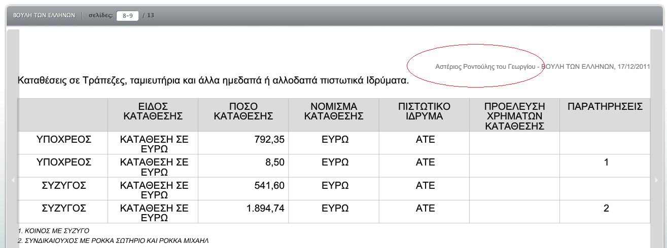 Πόθεν Έσχες Στ. Ροντούλη Posted on 22/12/2011 by ΒΑΣΙΛΑΚΑΚΗΣ Σχολιάστε Δήλωση περιουσιακών Στοιχείων (έτους 2009) του Υφυπουργού ΥΠΑΑΤ Στ. Ροντούλη ακίνητα Οικογένειας Ροντούλη : Καταθέσεις οικογένειας Ροντούλη: κλίκ πάνω για μεγένθυση πηγή : Βουλή των Ελλήνων ( κλίκ εδώ) ΥΓ: . . . φτωχαδάκι , σε σχέση με άλλους συναδέλφους του ! Προώθηση Κλικ για αποστολή ενός συνδέσμου μέσω email σε έναν/μία φίλο/η(Ανοίγει σε νέο παράθυρο) Email Κλικ για εκτύπωση(Ανοίγει σε νέο παράθυρο) Εκτύπωση Πατήστε για κοινοποίηση στο Facebook(Ανοίγει σε νέο παράθυρο) Facebook Κάνε κλικ για να μοιραστείς στο X(Ανοίγει σε νέο παράθυρο) Χ Μου αρέσει! Φόρτωση... Σχετικά