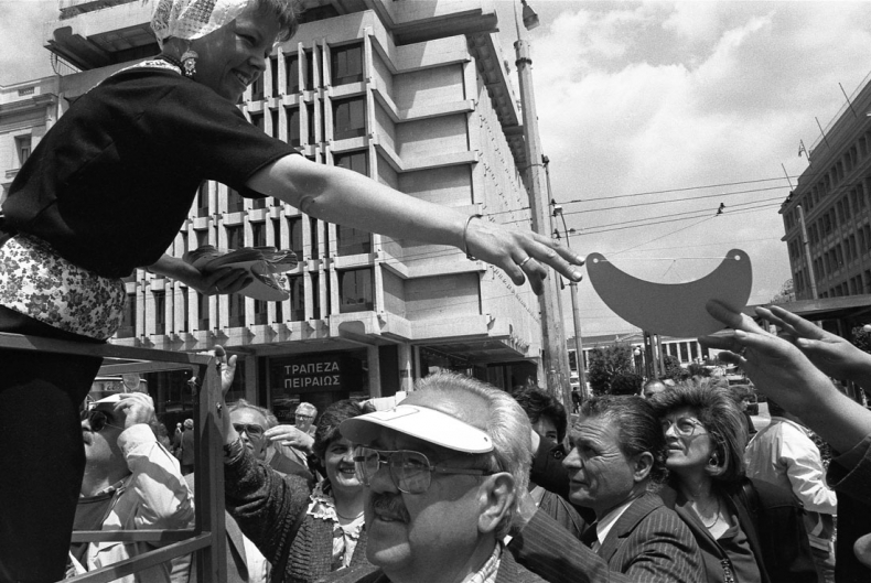 Οι φωτογραφίες προέρχονται από το ρεπορτάζ στο ένθετο (Cahier Europe) της εφημερίδας Liberation (Μάης του ’91) με θέμα την φτώχεια και την σύγχρονη χρηματοδότηση μεγάλων έργων (Μετρό , Γκάζι, λιμάνι της Ραφήνας, Μουσείο της Ακρόπολης) που είχε χαρακτηριστεί «ανθελληνικό» από Τα Νέα.