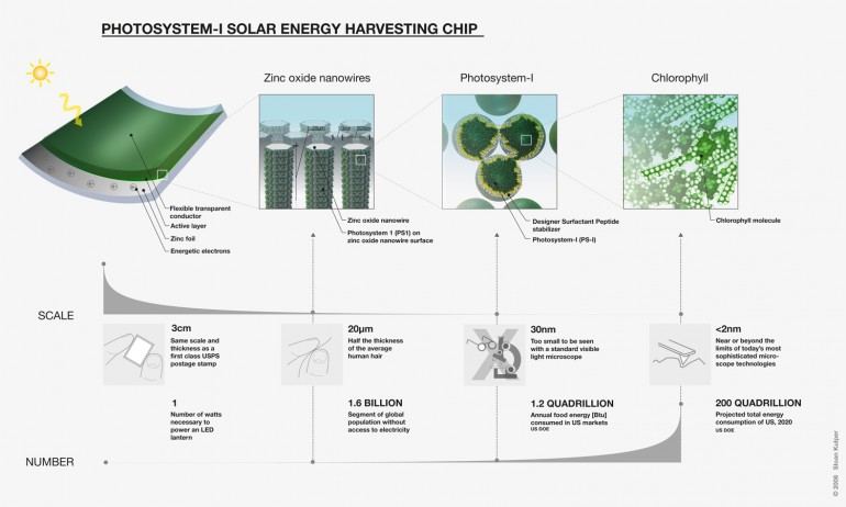 Το «Φωτοσύστημα Ι» βασίζεται στους χλωροπλάστες. Αν αυτοί αναμειχθούν με ειδικά σχεδιασμένα χημικά τότε μετατρέπονται σε ένα νέο φωτοβολταϊκό υλικό. «Τα φύλλα, τα φυτά είναι ηλιακοί συλλέκτες της φύσης», σημειώνει ο Andreas Mershin.