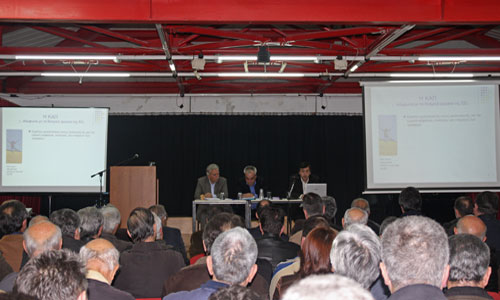 Εισηγητές της ημερίδας ήταν ο κ. Σωτ. Κουτσομήτρος Γεωπόνος της δ/νσης Αγροτικής Πολιτικής του Υπουργείου Αγροτικής Ανάπτυξης και Τροφίμων και ο Περιφερειακός Σύμβουλος επίσης γεωπόνος κ. Αργ. Μποτός.