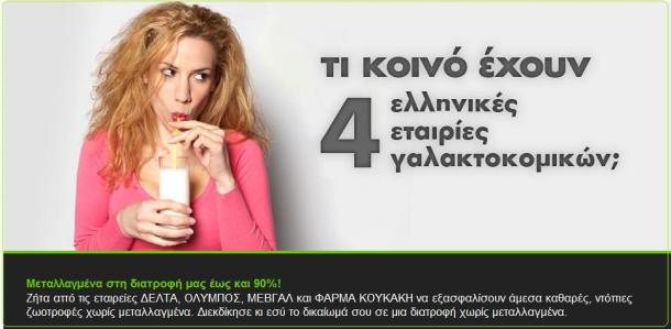 Μεταλλαγμένα στο . . . ποτήρι μας ! Posted on 18/02/2012 by ΒΑΣΙΛΑΚΑΚΗΣ Σχολιάστε . Η Greenpeace ενημερώνει τους έλληνες καταναλωτές ότι 4 μεγάλες γαλακτοβιομηχανίες σερβίρουν στους καταναλωτές γάλα που έχει προέλθει απο την χρήση μεταλλαγμένων τροφών . διαβάστε περισσότερα : Προώθηση Κλικ για αποστολή ενός συνδέσμου μέσω email σε έναν/μία φίλο/η(Ανοίγει σε νέο παράθυρο) Email Κλικ για εκτύπωση(Ανοίγει σε νέο παράθυρο) Εκτύπωση Πατήστε για κοινοποίηση στο Facebook(Ανοίγει σε νέο παράθυρο) Facebook Κάνε κλικ για να μοιραστείς στο X(Ανοίγει σε νέο παράθυρο) Χ Μου αρέσει! Φόρτωση... Σχετικά