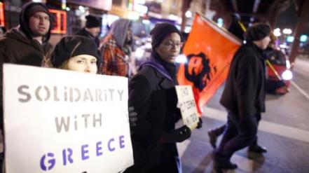 Συγκέντρωση αλληλεγγύης προς τον Ελληνικό λαό πραγματοποιήθηκε στο Μανχάταν το βράδυ του Σαββάτου (ώρα Ελλάδας). Περισσότεροι από τριακόσιοι διαδηλωτές συγκεντρώθηκαν στο «Λίμπερτι Πλάζα» (Ζουκότι Παρκ), στην περιοχή της Γουόλ Στριτ.