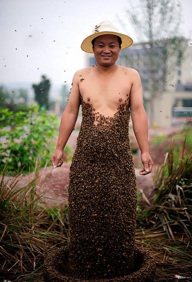 33,1 κιλά ζυγίζουν οι μέλισσες που βρίσκονται πάνω στο σώμα του μελισσοκόμου She Ping .