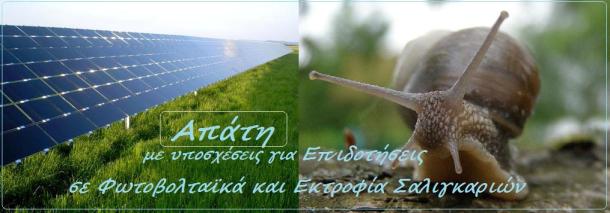 | Με δέλεαρ τα προγράμματα του ΕΣΠΑ εταιρεία της Θεσσαλονίκης φέρεται να εξαπάτησε δεκάδες μικροεπενδυτές, στους οποίους έταξε επιδοτήσεις για εγκαταστάσεις φωτοβολταϊκών και ανάπτυξη σαλιγκοκαλλιέργειων. |