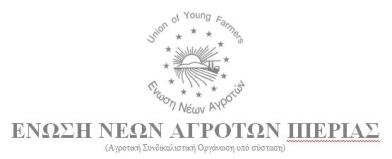 Την Δευτέρα, 9 Ιουλ 2012, στις 21.00, στα γραφεία της Ένωσης Νέων Αγροτών Πιερίας στο Παλαιό Κεραμίδι Δήμου Κατερίνης προσκαλούνται όλοι για την πανηγυρική έναρξη μιας νέας προσπάθειας στον αγροτικό τομέα.