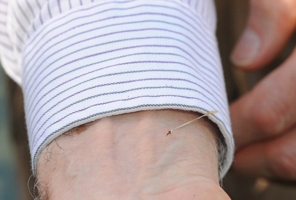 Τη στιγμή που μια μέλισσα αφήνει το κεντρί της στο χέρι ενός άντρα και στη συνέχεια προσπαθεί να πετάξει απαθανατίστηκε στις παρακάτω φωτογραφίες.