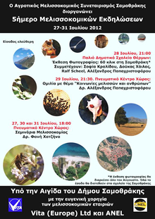 5ήμερο Μελισσοκοκομικών εκδηλώσεων στην Σαμοθράκη Posted on 28/07/2012 by ΒΑΣΙΛΑΚΑΚΗΣ Σχολιάστε κάντε κλίκ για μεγένθυση Σαμοθράκη 27 – 31 Ιουλίου διοργανωτές : Μελισσοκομικός Συν/σμός Σαμοθράκης Προώθηση Στείλε ένα σύνδεσμο σε έναν φίλο(Ανοίγει σε νέο παράθυρο) Email Εκτύπωση(Ανοίγει σε νέο παράθυρο) Εκτύπωση Mοιραστείτε στο Facebook(Ανοίγει σε νέο παράθυρο) Facebook Μοιραστείτε στο X(Ανοίγει σε νέο παράθυρο) Χ Μου αρέσει! Φόρτωση... Σχετικά