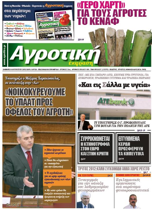Πηγή : Αγροτική Έφραση φύλλο 4 Αυγούστου 2012