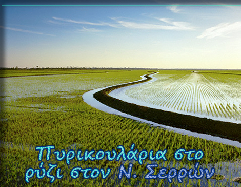 Η Δ/νση Αγροτ. Οικονομίας & Κτηνιατρικής της Π.Ε. Σερρών ανακοινώνει προς τους ορυζοπαραγωγούς του Νομού ότι λόγω των καιρικών συνθηκών που επικρατούν αυτή την εποχή προβλέπεται να διαμορφωθούν ευνοϊκές συνθήκες για την ανάπτυξη της ασθένειας «Πυρικουλάρια του ρυζιού» στους ορυζώνες.