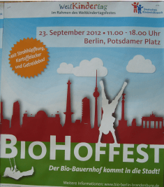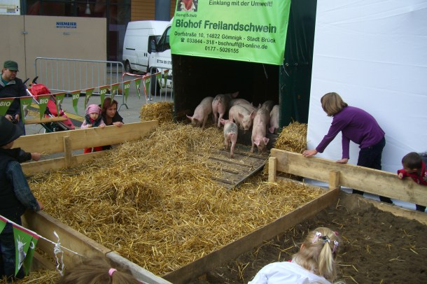Χθές σε κεντρική πλατεία του Βερολίνου υπήρχε μια έκθεση «Βιολογικού Αγροκτήματος» που απευθυνόταν σε μικρά παιδιά με σκοπό την πρώτη γνωριμία με την βιολογική γεωργία. |