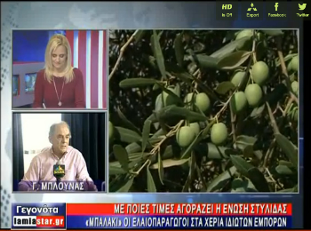 Εξευτελιστικές οι τιμές στην ελιά φέτος. Παρά την τεράστια παραγωγή, οι ελαιοκαλλιεργητές βλέπουν ότι οι κόποι τους δεν πιάνουν τόπο, αφού η ένωση ελαιουργικών συνεταιρισμών Στυλίδας ανακοίνωσε τιμή 30 λεπτά τα 240-260 τεμάχια.