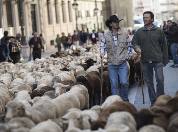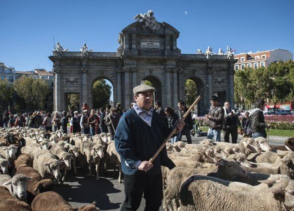 Τα πρόβατα συγκεντρώθηκαν απο τους κτηνοτρόφους στο κέντρο της Μαδρίτης στις 28 Οκτωβρίου 2012. Οι κτηνοτρόφοι οδήγησαν εκατοντάδες πρόβατα στην πρωτεύουσα για να πιέσουν την κυβέρνηση στην διατήρηση των αρχαίων μονοπατιών των μετακινούμενων κοπαδιών που χρονολογούνται πολλά απο αυτά περίπου πριν απο 8.000 χρόνια.