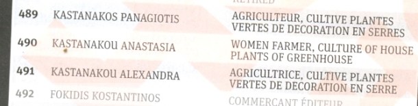 491 KASTANAKOU ALEXANDRA AGRICULTRICE, CULTIVE PLANTES VERTES DE DECORATION EN SERRE