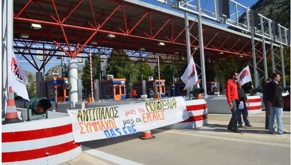 Στην συνέχεια, όλοι οι παρευρισκόμενοι έδωσαν ραντεβού στα Διόδια της Νεστάνης, προχωρόντας σε μια συμβολική κατάληψη και επιτρέποντας την διέλευση των αυτοκινήτων χωρίς να πληρώνουν αντίτιμο οι οδηγοί. Μάλιστα, αρκετοί από τους οδηγούς των διερχόμενων οχημάτων επικρότησαν την συγκεκριμένη κίνηση και τόνισαν ότι οι αγώνες είναι υπόθεση όλων μας.
