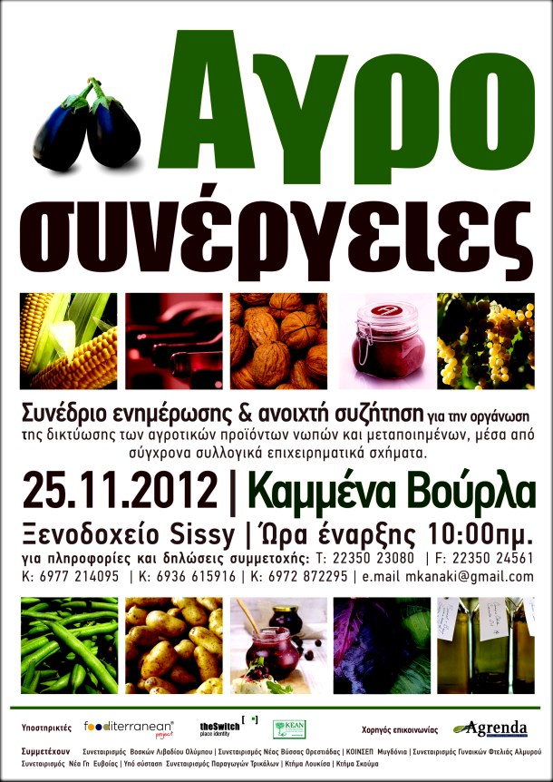 Την Κυριακή 25 Νοεμβρίου και ώρα 10 π.μ θα πραγματοποιηθεί στα Καμένα Βούρλα το 1° Συνέδριο για την οργάνωση της δικτύωσης των αγροτικών προϊόντων νωπών και μεταποιημένων, μέσα από σύγχρονα συλλογικά επιχειρηματικά σχήματα.