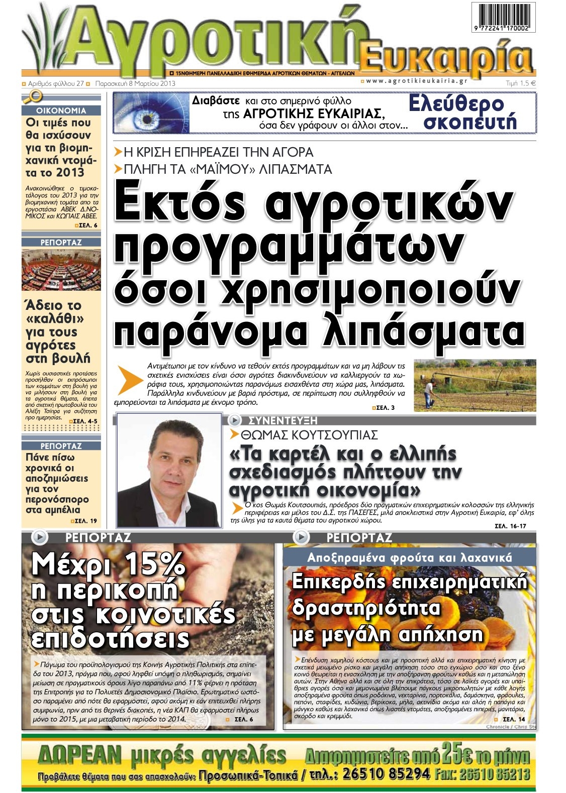 Αγροτικές εφημερίδες Posted on 09/03/2013 by ΒΑΣΙΛΑΚΑΚΗΣ Σχολιάστε κλίκ πάνω για μεγένθυση Προώθηση Κλικ για αποστολή ενός συνδέσμου μέσω email σε έναν/μία φίλο/η(Ανοίγει σε νέο παράθυρο) Email Κλικ για εκτύπωση(Ανοίγει σε νέο παράθυρο) Εκτύπωση Πατήστε για κοινοποίηση στο Facebook(Ανοίγει σε νέο παράθυρο) Facebook Κάνε κλικ για να μοιραστείς στο X(Ανοίγει σε νέο παράθυρο) Χ Μου αρέσει! Φόρτωση... Σχετικά